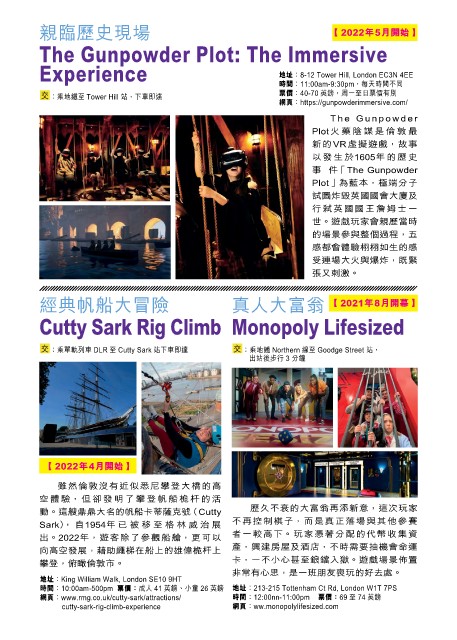 網頁:www.rmg.co.uk/cutty-sark/attractions/ 時間:12:00nn-11:00pm 票價:69 至 74 英鎊